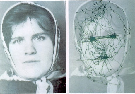 その目の動きを記録すると視線は目と口元に集中しているのがおわかりでしょうか?