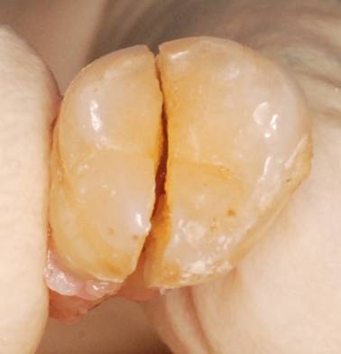 写真のように歯が割れてしまう事もありますのでご注意ください。