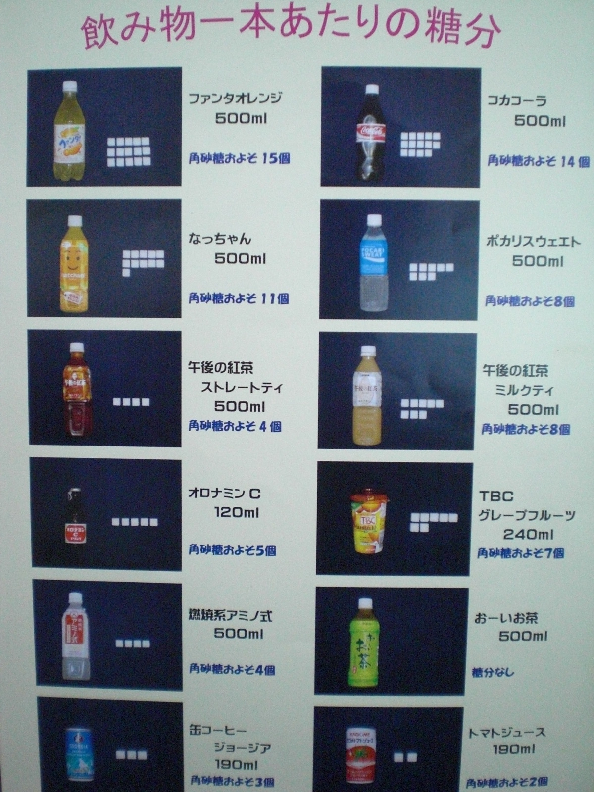 暑い夏にはこまめな水分補給をと呼びかけられますが水の代わりにスポーツドリンクや清涼飲料をがぶ飲みしていると急性の糖尿病になることがあります。ご注意ください。