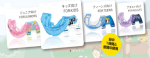 10年ほど前のオーティカインターナショナルのMFT(筋機能療法)で使用する装置はT4Kが主で今のようにたくさんの種類はありませんでした。この6年間で上顎前突(俗に出っ歯)、反対咬合(俗に受け口、しゃくれあご用)はもちろん、今では2歳から使用できるMYOCHEWをラインナップされています。MYOCHEWは安全を考慮し、ストラップが付属しています。マイオブレースによるMFTでお口ぽかんを改善し鼻呼吸になるように親子で頑張りましょう。