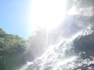 滝の前に立つと、天然のミストシャワーを浴びているようでとても涼しく、まさにご褒美の時間でした。